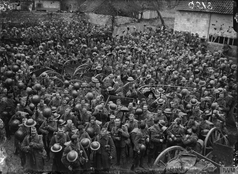 By the end of July, there was very stiff resistance on the right at the heavily-fortified Guillemont village. Urgency meant attacks at shorter notice with less preparation. At 4:20 am on 8th August, the 55th Division attacked Guillemont. On the right, 165 Brigade attacked south of the village with some success. On the left, 164 Brigade attacked with 1/8 KLR (the ‘Liverpool Irish’ together with two companies of 1/4 LNLR) in the north and 1/4 KORLR in the division’s centre. The Lancaster battalion met uncut wire, were rallied by 2Lt Gabriel Coury of the 1/4th South Lancs, the 55th Division’s pioneer battalion, who won the Victoria Cross, but retired under very heavy frontal and flanking fire. The ‘Irish’ attacked through mist and dust but veered left, reaching Guillemont Station but gaining the north of Guillemont. Unsupported on both sides, behind them enemy emerged from dugouts to dominate the battalion’s rear with MGs. The battalion was cut off: only two or three men returned. The war diary shows 515 soldiers unaccounted; many of the missing were later glimpsed being marched away as prisoners.