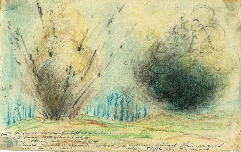 12/8/16: Carry bombs, 2 boxes. An agony march. Trenches narrow. … Arrive in reserve trenches greatly fatigued. Oh the sights I have seen …a haze of drama, murder. I have been over the top in a charge. It was hell. How any man lived through it is a mystery. My feeling before going was beyond words. … To portray the charge is impossible. I wish to God I could forget it all. I am safe. Many of my pals are no more.