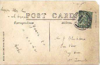This card from Arthur Hopley caught the 8.45 pm post on 29th May 1914, a Friday evening. Perhaps he was off for some training that weekend; maybe