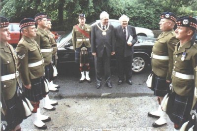 As Chairman of the Liverpool Scottish Officers' Association he maintained the network of officers, pre-war to today, and retained them within the Regimental fold. Many are here today from across the country. The Liverpool Scottish is a family and it is not just David Evans, of course, but his contribution to Regimental life has been incalculable. In some projects he led, in others not, but always his contribution was significant. Deep involvement with the centenary ball, the Officers' centenary dinner, trips to Belgium, his entirely personal concept of Scottish Wood at Altcar Ranges and its execution, placing the Liverpool Scottish Memorial Stone on its Belgian battlefield were almost routine.