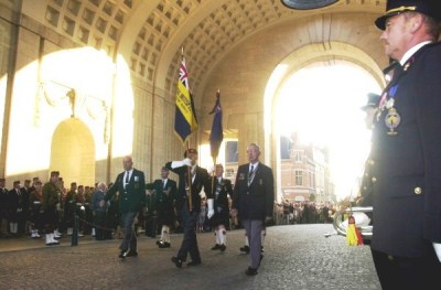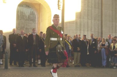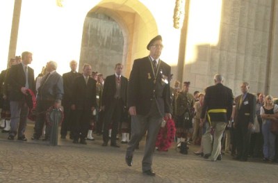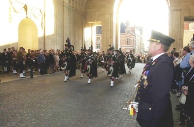 Mr Fulton was introduced to the buglers of the Ieper Fire Brigade by Mr Guy Gruwez MBE AOM, Chairman of the Last Post Committee The standards of the Liverpool Scottish and the Hounslow Royal British Legion were led off parade by the Liverpool Scottish Pipes and Drums contingent.