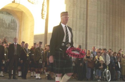 Wreaths were laid by the Lord Mayor of Liverpool, Councillor Edwin Clein, and by Mr William Fulton the High Sheriff of Merseyside. Wreaths were also laid on behalf of the serving element of the Liverpool Scottish, the Liverpool Scottish Regimental Association and the Liverpool Scottish Army Cadet Force Unit. A wreath was laid by Mr Paul Spenley of the Liverpool Institute Old Boys Association. The Institute was a renowned Liverpool school and some scores of their Old Boys died with the Liverpool Scottish during the First World War. WO2 John Pollock of Merseyside ACF also laid a wreath on behalf of his detachment.