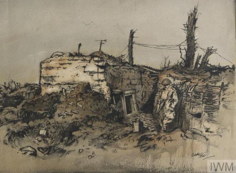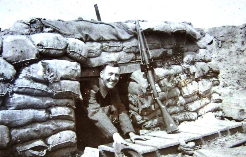 We were to send two companies over the top and two companies, including mine, remained to garrison our trench. My Company HQ was in a German pillbox. When the time came, Captain Tickler’s company, Tickler of Tickler’s Jams, got out of the trenches. They went forward at a walk, nothing happened for about 100 yards and then all hell let loose; a lot of men went down. As we were on the right, the pill boxes not engaged, as no-one was attacking them, could fire on us. So we took cross-fire from the flank. 140 in that company, only 40 came back. They never took Borry Farm. Later Tickler signalled to me [probably by lamp] ‘Germans massing for counter-attack – SOS’. I fired an SOS rifle grenade - two red balls and two green balls, the signal for artillery to fire the SOS immediately. Nothing happened for five seconds [sic] so I fired another and then the barrage came down, it was like a curtain of fire, not onto our people but onto the German support trenches. There was no counter-attack. [Paraphrase of IWM Cat Sound 7498 Reel 7 - online]