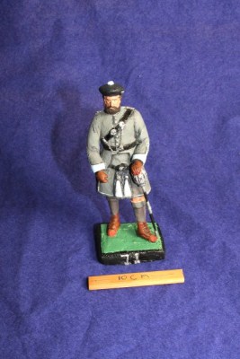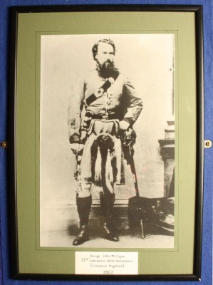 This however did not satify the members of the 71st who wished to wear a tartan and again there was a secession. This resulted in a 2nd Liverpool Highland Coy being raised. This new company was accepted as the Highland Company of the 79th Lancashire R.V.C. and was commanded by Captain Robert Lamont. Dress was a fawn grey doublet with Malcolm kilt and Glengarry bonnet.The ranks of this company were swelled when they were joined by members of the ''Birkenhead Scottish'' who came across the Mersey, when the Lord Lieutenant of Cheshire refused to let Birkenhead men adopt the kilt.