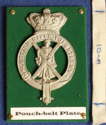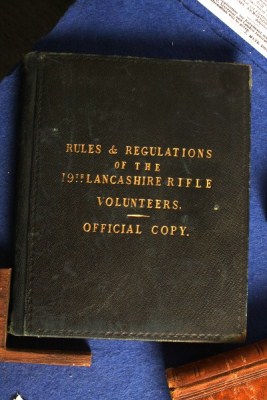 Once up to it's minimum strength, the service of the Corps was offered to the War Office. Her Majesty the Oueen, giving her approval on the 10th January 1860. The Corps was accepted as the 19th Corps of Lancashire Volunteer Rifles. Uniform was to be dark grey tunic with red facings and Urquhart tartan trews for the Lowland Companies and Dark grey doublet and Mackenzie trews for the Highland Coy A. with the diced forage cap of 42nd Regiment pattern worn by all members. Headquarters were established at No 4 Great George's Square with the officers selected being:-