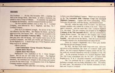 On the 15th November 1859. a meeting was held in the George Hotel. Dale Street at which a resolution was passed to raise a Corps of riflemen A committee was appointed to organise the formation and the Liverpool Scottish was born.