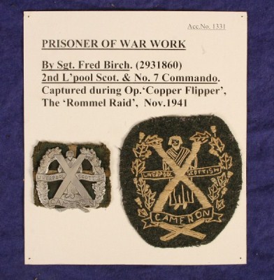 The Regimental did not serve overseas as a unit during the war but served as a training battalion before sending men to other units around the world. Many men from the Liverpool Scottish therefore served with distinction with other units including the Commandos. This case contains a mix of memrobilia from those who served.